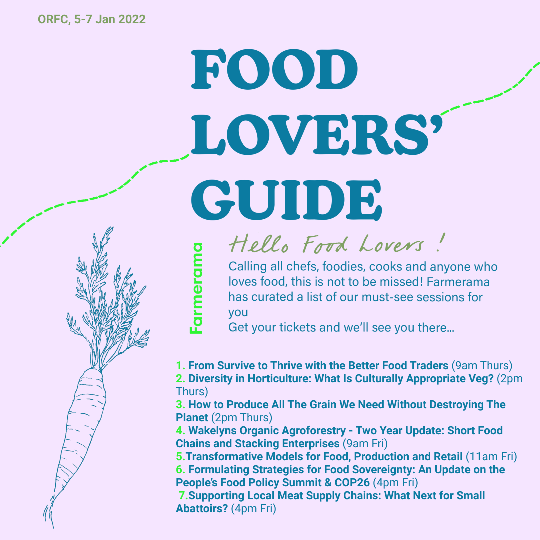 Explore #ORFC22 with the help of our media partners, Farmerama Radio. Dive into the areas that interest you with these handy guides. Follow Farmerama on Instagram for IG Lives with ORFC speakers and the latest conference news and views.